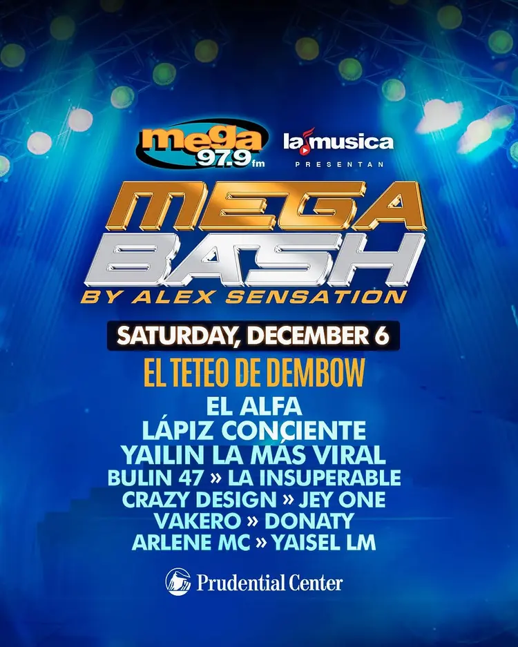 Get ready, Mega Bash 2025, the party of the year is coming! On Saturday, December 6, 2025, at 8:00 PM, the iconic Prudential Center in Newark, New Jersey, will host Mega Bash 2025 by Alex Sensation “El Teteo de Dembow”. This high-energy Latin music event brings together major names in dembow, urban,
