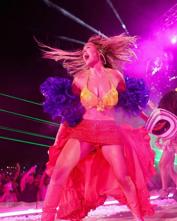 Becky G also returned to the stage for “Mamiii,” giving Karol G one of the most recognizable bilingual Latin hit pairings of the last several years. Becky had already appeared during Karol’s first weekend set, but her return in Weekend 2 helped preserve one of the most crowd-ready moments in the show while also reinforcing the cultural symbolism of two U.S.-Latina and Colombian stars sharing one of the festival’s biggest stages.