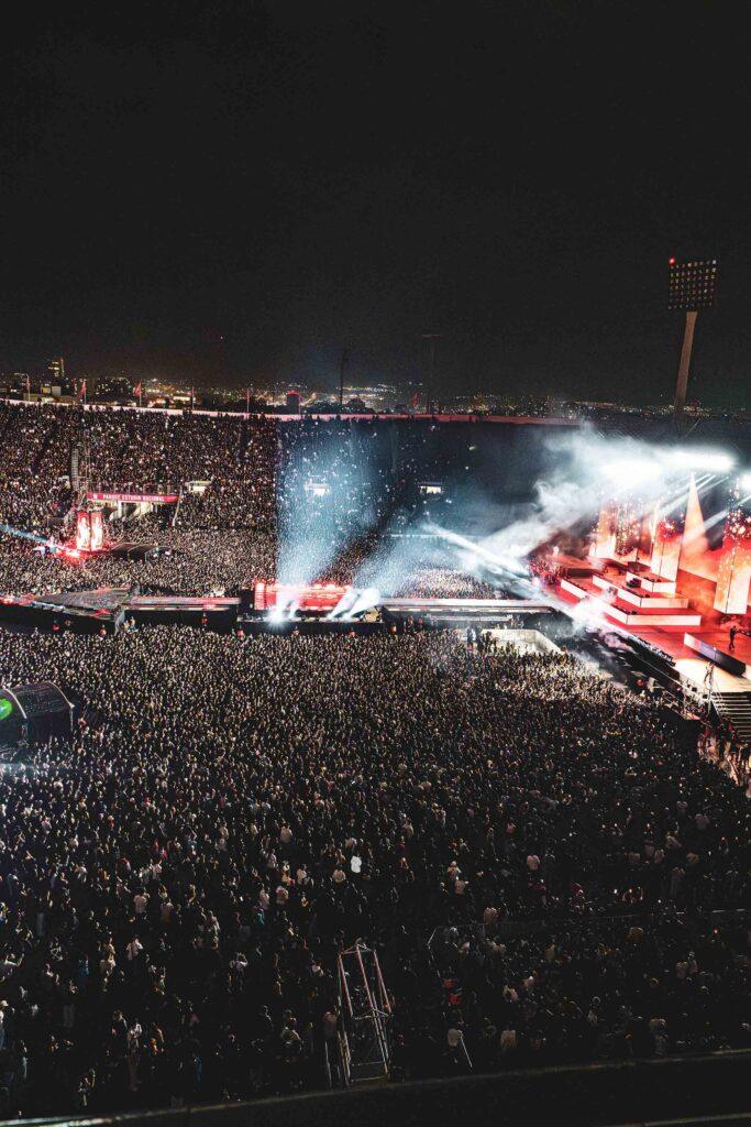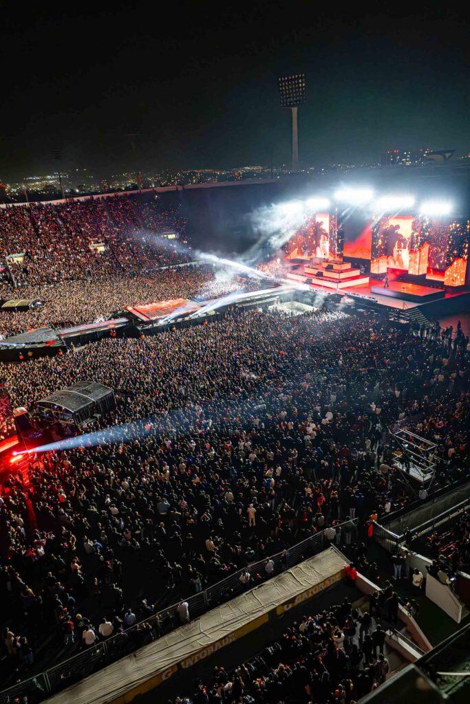The show’s scale matched the moment. Across a setlist reportedly built around more than 50 songs, Cris MJ moved through records including “APOCALIPSIS,” “7 TROMPETAS,” “FROZEN,” “BOTELLITA DE CHAMPAGNE,” “ELITE,” “MAYBACH,” “VAMO A BAILOTEAR,” “DAYTONA,” “PARTY MJ,” “CHICA GALÁCTICA,” “30 MIL PIES,” “CONMIGO SE ESCAPA,” and “PRESIDENTE.” The production leaned into a full stadium language: large-scale staging, synchronized lighting, visuals, and effects designed to frame Chilean urbano with the same ambition normally reserved for global touring acts.